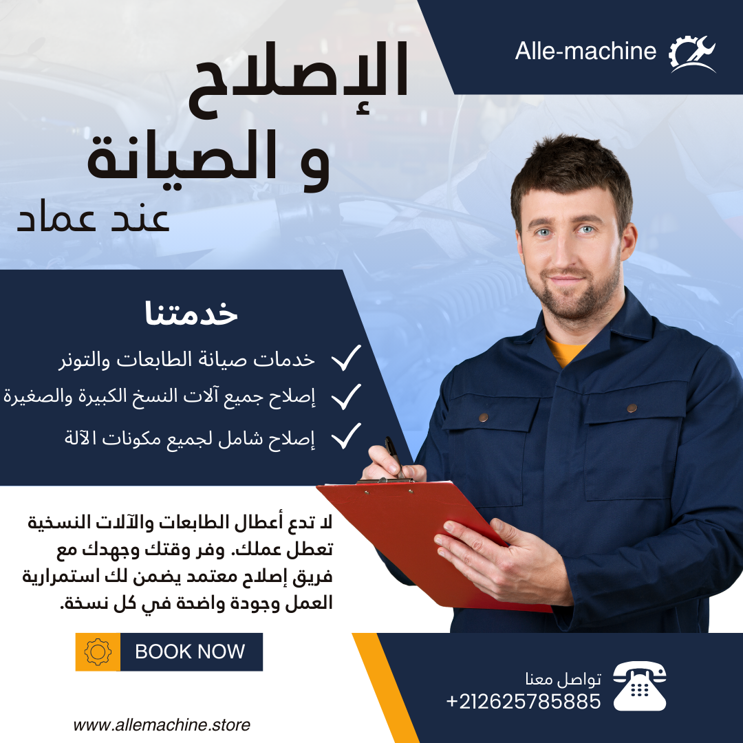 🔹 نحن نعلم أن تعطل آلة النسخ قد يوقف عملك ويؤثر على إنتاجيتك، لذلك نحرص على تقديم خدمة سريعة، احترافية، وبدون أي تعقيد… فقط تواصل معنا وسنتكفل بالباقي.
